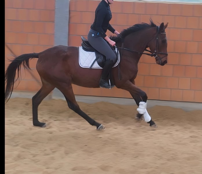 Jument de 4 ans, bien dressée, d'environ 1,68 m. Montée de manière raisonnable et soignée. Très apprenante. Dotée d’un bon potentiel aussi bien en dressage qu’en saut d’obstacles. Tête claire, avec la volonté d’apprendre. Idéale pour continuer sa formation cet hiver et débuter la nouvelle saison de concours. Très intéressante également pour une mise en marché ultérieure. Malgré son jeune âge, déjà très sage au travail. Échange possible ainsi que transport. Sur demande, vendue avec un équipement neuf complet contre un léger supplément. Un examen vétérinaire d’achat, comprenant radiographies et analyses sanguines, peut être réalisé par votre vétérinaire. Nous attendons votre appel au 01774289729. Les demandes écrites ne seront pas répondues. Nous pensons que toute personne intéressée doit nous contacter par téléphone. Afin d’éviter les mails inutiles, merci de ne pas prendre contact si vous ne souhaitez pas appeler.