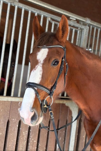 Zum Verkauf steht eine außergewöhnlich hübsche und talentierte irische Sportpferdestute (geb. 2021), die sowohl mit ihrer beeindruckenden Erscheinung als auch mit ihrem durchweg angenehmen Wesen überzeugt. Sie steht im großen Rahmen, ist korrekt gebaut und bringt mit aktuell 170 cm Stockmaß ein modernes, sportliches Exterieur mit. 🐴 Erscheinungsbild: Wunderschöner, dunklerer Fuchs Hübsche Blesse Vier weiße Füße Sehr harmonisches, elegantes Gesamtbild ✨ Charakter & Umgang: Diese Stute besticht durch ein extrem ruhiges, freundliches und menschenbezogenes Wesen. Sie ist durch und durch liebenswert, zeigt keinerlei Unarten und ist im täglichen Umgang absolut unkompliziert. brav beim Reiten nervenstark und klar im Kopf angenehm zu händeln, auch für schwächere Reiter geeignet brav beim Schmied problemlos zu verladen 🏇 Ausbildungsstand & Einsatzmöglichkeiten: Die Stute wurde altersgemäß schonend ausgebildet und zeigt sich unter dem Sattel stets motiviert und leicht zu reiten. Dressur: A-Niveau, schöne weiche Gänge, sehr angenehm zu sitzen Springen: bisher bis 1,00 m gelaufen, immer vorwärts, nicht guckig, will zuverlässig auf die andere Seite Gelände: kennt Geländehindernisse und Jagdritte, dort ein verlässlicher Partner Sie bringt Talent und Veranlagung für alle Sparten des Reitsports mit und wird sich bei weiterer Förderung sicher zu einem Top-Sportpartner entwickeln. Aufgrund ihres tollen Charakters ist sie ebenso ideal für ambitionierte Freizeitreiter, die Freude an einem besonders angenehmen Pferd haben. 💉 Gesundheit: gesund, ohne Unarten auf allen vier Hufen beschlagen regelmäßig geimpft und entwurmt 📦 Zubehör & Service: passendes Zubehör kann gegen Aufpreis erworben werden ein Transport kann bei Bedarf organisiert werden 📍 Besichtigung & Kontakt: Ein Besichtigungstermin ist jederzeit nach Absprache möglich. Für weitere Informationen, Bilder oder Videos kannst du gerne jederzeit Kontakt aufnehmen.