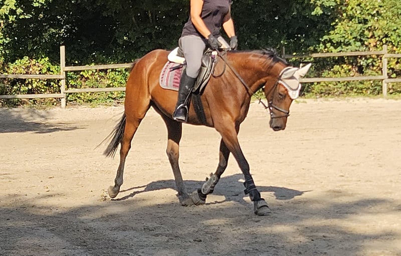 Rose is a charming Irish mare, approximately 165 cm tall. At 5 years old, she will still grow a bit and develop even more. Rose is incredibly well-behaved in everything, truly amazing. She has potential for dressage, show jumping, and eventing. She also enjoys going out on trails. Rose is a real all-rounder, just hop on and feel comfortable. She is easy to sit and extremely responsive to the aids. In handling, she is very sweet; she is a real cuddle bug. A recent veterinary examination with no findings is already available. If you are interested in videos, please contact us directly via WhatsApp at: 0177/2721831.