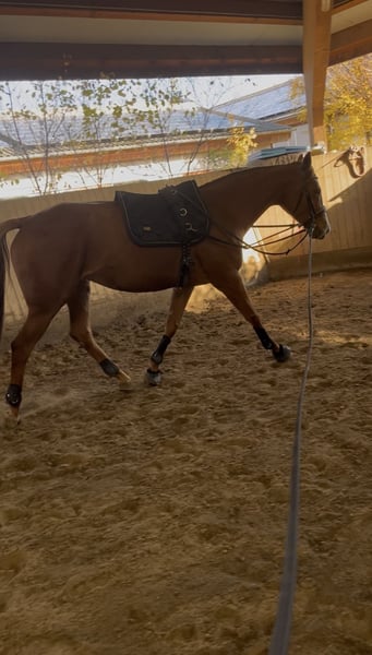 Hello, I am looking for a loving new home for my 7-year-old Irish Sport Horse mare, Ruby (approximately 16.1 hh). I have had her for about a year, but due to personal and financial reasons, I am reluctantly seeking to find her a new family. Ruby has a wonderful temperament; she is very eager to learn, brave, and attentive. She has a lot of energy and loves to move and work. She is looking for a steady, trusting partner—once she builds that trust, she is very affectionate and brings great joy to daily work. Ruby is familiar with: - Lunging & double lunging - Work with a bitless bridle & rope halter - Groundwork & obstacle work - Trail riding She is good with the farrier, calm during loading, and has previously stood quietly in the trailer for several hours. In terms of training, Ruby is approximately under saddle. We have spent a lot of time in the field and are currently working on her basic training in the arena. She responds very delicately to aids and voice commands and does not require strong pressure. We have been working with a gentle, experienced trainer. Ruby is not suitable for beginners or children. She needs an experienced rider who can continue her training calmly and consistently, and who enjoys working with her. Health: - Currently transitioning to barefoot - Previously shod, but manages well without shoes - No veterinary treatments necessary so far - Teeth done & vaccinations until January 2025 - Regularly dewormed Due to her transition to barefoot, she is being offered at a reduced price. There is a lot of equipment available, including: - Saddle - Bridle - Saddle pads - Blankets - Leg protection Some of the accessories can be purchased together with her. Reining videos are available. Ruby will only be placed in good hands. If you are genuinely interested, I would appreciate a message with a brief introduction. Best regards, Mia & Ruby