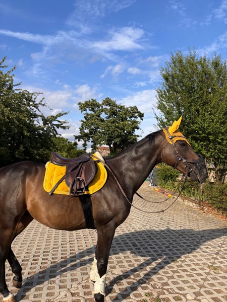 Con grande rammarico, noi (madre e figlia) dobbiamo separare il nostro amato cavallo da passeggio Rocky. Rocky (nato Sicilian Rock) è un gelding di sangue irlandese di 10 anni e 9 mesi. A causa del suo carattere eccellente, ci ha sempre accompagnato con affidabilità e bontà. È un vero tesoro nel rapporto con le persone, sempre amichevole e socievole. Sotto la sella, Rocky si mostra equilibrato, nervosamente stabile e sincero. Che si tratti di maneggio in paddock, in arena o in campagna, le lunghe passeggiate sono per lui un grande piacere, sia da solo che in gruppo. Gli stimoli esterni, come auto, camion o trattori, non lo disturbano. Rocky ha anche potenziale per il salto, ma necessita del supporto di un cavaliere esperto in salto ostacoli, cosa che purtroppo non possiamo offrirgli adeguatamente. Dal punto di vista sanitario, Rocky è in perfetta forma, regolarmente seguito dal ferratore, dal veterinario e dal dentista. Tutte le vaccinazioni sono documentate. Anche in gestione, Rocky si dimostra facile e affidabile. A causa di cambiamenti nelle nostre circostanze di vita, desideriamo trovare per Rocky una famiglia amorevole, composta da un/a cavaliere/a da leisure, che ami il passeggio e una partnership armoniosa. Il nostro prezzo di vendita si aggira intorno ai 5.400 euro, ma per noi il principio “prezzo non è tutto” viene prima di tutto. Per interessati, si prega di contattarmi al numero 0160-99175796. Video disponibili dopo il primo contatto.
