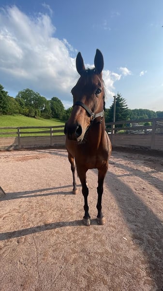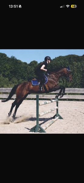 With a heavy heart, I am selling my Irish Thoroughbred gelding. • Height: approximately 16.1 hh • Age: 13 years He is an absolutely well-behaved and reliable partner in daily handling—whether in training, at competitions, or in the stable routine. Even in unfamiliar situations, he consistently proves to be steady-minded and uncomplicated. In jumping, he is very honest and brave: He clears every obstacle, whether poles, fillers, or cross-country jumps—his motto is always "over to the other side." • Competition experience up to 2* level with placings • Already introduced at L-level • He confidently completes a M-course in training, and can also handle individual M** jumps Racially typical, he has a good forward drive, yet remains controllable, attentive, and eager to please his rider. He also performs very well in dressage. He transitions smoothly between canter leads. Additionally, he is versatile: suitable for groundwork, hacking, trail riding—he makes everything enjoyable. Due to a health-related absence, he was out of work for six months but has been in training again for a month and is steadily improving. He will be vaccinated again at the end of the month and presented to the farrier. Sale only to the best hands: • Not an emergency sale • No dealers or riding schools If collected by March, he may come with extensive accessories: • All blankets • Dressage and jumping saddle • Three bridles • Grooming supplies • Additional tack and feed A wonderful horse for ambitious riders seeking an honest, performance-oriented, and versatile partner. Priority to the horse’s well-being over price. The first picture shows him currently with his winter coat.