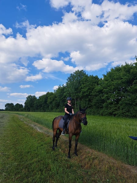 Met pijn in het hart verkoop ik mijn Ierse volbloed ruin. • Schofthoogte: ca. 162 cm • Leeftijd: 13 jaar Hij is een uiterst brave en betrouwbare partner in de dagelijkse omgang – of het nu gaat om training, wedstrijden of stalwerk. Ook in ongewone situaties toont hij zich altijd kalm en makkelijk in de omgang. In springen is hij zeer eerlijk en moedig: Hij springt over elke hindernis, of het nu stangen, onderbouwen of cross-country sprongen zijn – zijn motto is altijd “naar de andere kant”. • Wedstrijdervaring tot en met klasse A** met goede resultaten • L is al voorgesteld • Tijdens training loopt hij zeker een M-parcours, ook enkele M**-sprongen beheerst hij Ras typisch beschikt hij over een goede voorwaartse instelling, maar blijft daarbij altijd onder controle, alert en wil hij zijn ruiter verrassen. Ook de dressuur doet hij zeer netjes. Galopwissels springen probleemloos. Daarnaast is hij veelzijdig inzetbaar: grondwerk, buitenritten, trailwerk – met hem is alles leuk. Vanwege een ziekte heeft hij 6 maanden stilgestaan, maar hij staat sinds een maand weer in training en ontwikkelt zich gestaag. Hij wordt eind deze maand gevaccineerd en wordt voor de hoefsmid gebracht. Verkoop alleen aan de allerbeste handen: • Geen noodgeval • Geen handelaren of rijscholen Bij ophalen vóór maart inclusief uitgebreide uitrusting, indien gewenst: • Alle dekens • Dressuur- en springzadel • 3 bitringen • poetsmateriaal • overige accessoires & voer Een geweldig paard voor ambitieuze ruiters die op zoek zijn naar een eerlijke, prestatiegerichte en veelzijdige partner. Plaats boven prijs Op de eerste foto is hij momenteel met zijn wintervacht te zien.