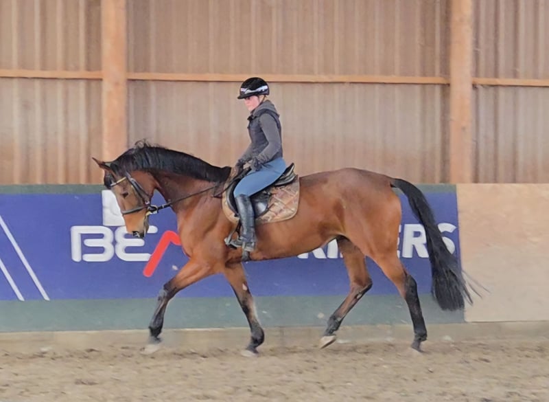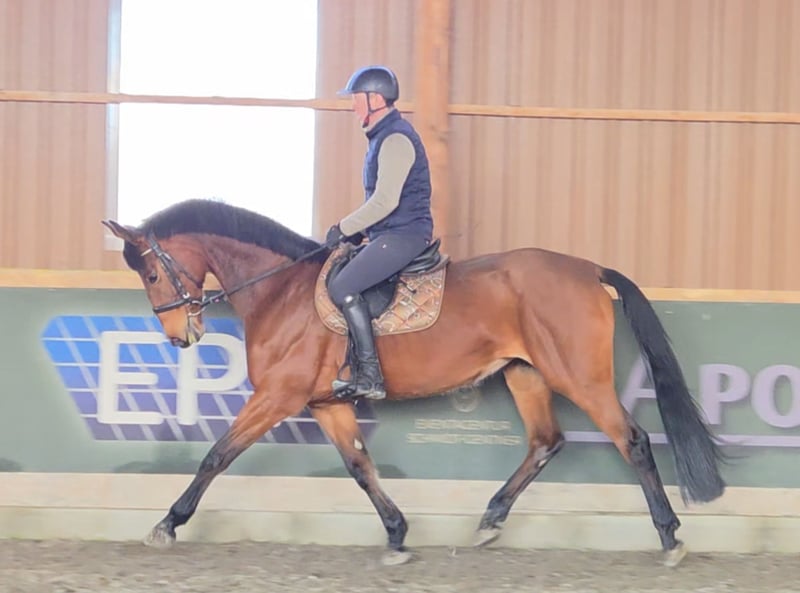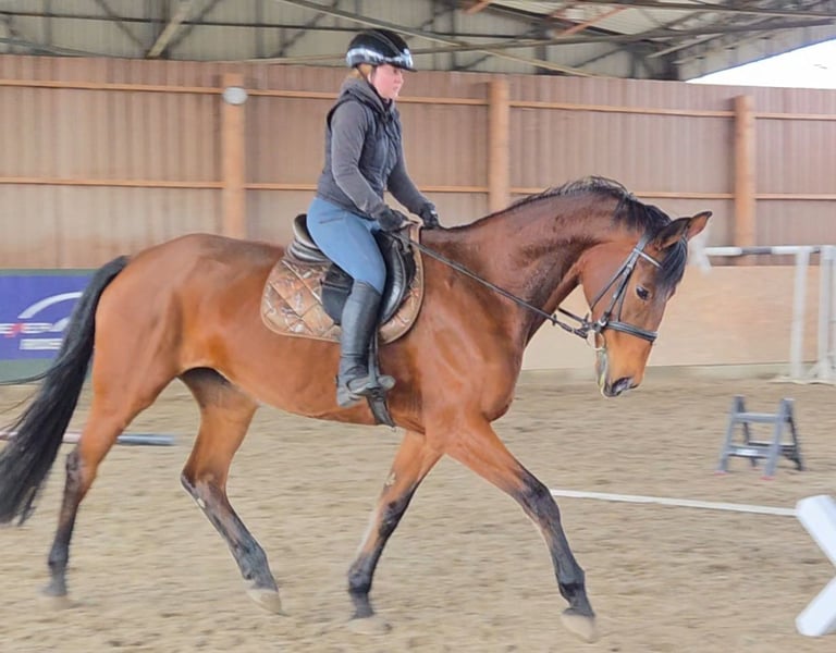 Joliet is very sweet and affectionate, absolutely well-behaved and easy to handle. She has no bad habits and is not at all temperamental. Besides her wonderful character, she also impresses with a stylish conformation. She works calmly in the arena and on the training ground, but her true passion is definitely trail riding, where she feels most comfortable. The mare has a correct basic education and has been ridden recreationally so far. She enjoys jumping and shows potential, although she has no formal jumping training. She has been used in breeding and has already foaled. She is herd-compatible, familiar with both open stable and box stall management, with daily turnout. She is barefoot and in good health, with no illnesses or injuries. She is farrier- and loading-trainable. Test rides are available by appointment via phone. More information and videos are gladly provided via WhatsApp.