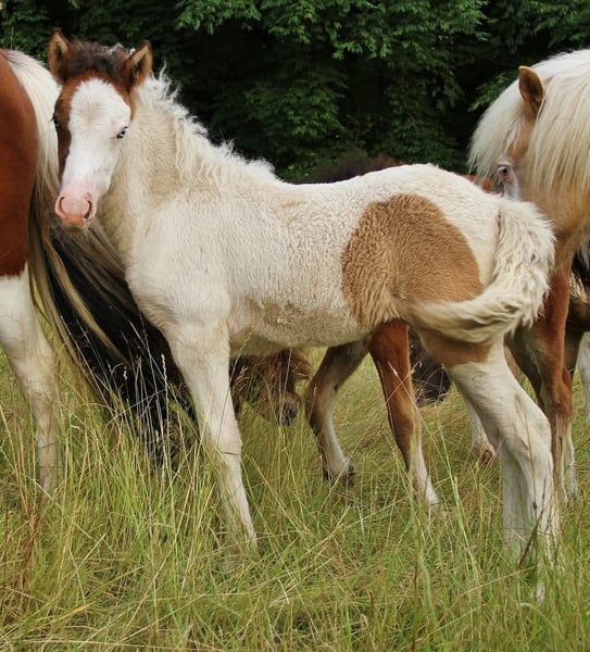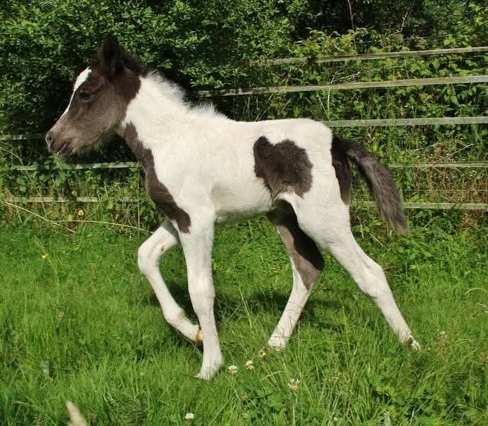 Sie suchen einen Hengst mit wow Effekt ? Ein feinfühliges Pferd mit etwas mehr Temperament ? Velvakandi ist 2018 bei mir geboren, seither Ekzemfrei, regelmäßig entwurmt, geimpft und Hufe gepflegt. Aufgrund einer Verletzung bei Stutenbelegung ist seine Nutzung als Reitpferd ggf. eingeschränkt, daher wird er günstig in beste dauerhafte Hände abgegeben. Abgabe ausschließlich als Zuchthengst. Er ist Jungpferdemäßig routiniert gehändelt und auch Hufpflege- und Verladefromm. Aus Zeitmangel wurde er bis dato noch nicht angeritten, befindet sich aber nun eigentlich im perfekten Alter dazu. Er ist kein Pferd für einen Schnellberitt sondern sollte eher in Ruhe und mit Zeit beritten und ausgebildet werden damit man einen verlässlichen spass bringenden Partner erhält. Durch seine Verletzung vermutlich nur freizeitmäßige Reitpferdenutzung möglich. Sein etwas sensibler ehrlicher freundlicher und unartenfreier Charakter gepaart mit hohem gut zu händelndem Temperament machen ihn Lauffreudig und Arbeitswillig. Im Freilauf reagiert er direkt auf wenig Treibende Hilfen ohne Kopflos zu werden. Velvakandi hat einen feinen eher edlen Kopf mit gut angesetztem sich verjüngendem Hals und leicht geschwungener Hals-Rückenlinie. Mit ca 137 Stm und seinem eher sportlich aussehenden Gebäude wird er den normalen Erwachsenen gut abdecken können da er dennoch eher kräftig stabil Gebaut ist mit nicht zu langem Rücken und guter Beinqualität. Als Fohlen wurde er geprüft mit 7,9 Ext. 8,2 Int. und 8,0 Gang. Weitgehendes korrekt gebautes Hengstfohlen mit gleichviel Tölt und Trab, bei weiten mittelhohen Bewegungen und viel Tempo. Als Fünfgänger hat er gute und stark ausgeprägte Grundgänge mit viel Raumgriff, Schwung und Tempofähigkeit bei schönen Bewegungen . Der Tölt ist immer wieder mindestens im Übergang sichtbar und reichlich vorhanden. Gerade als Fohlen und heranwachsendes Jungpferd hat er sein Potential im Tölt immer wieder gezeigt auch mit teils richtig schnellem Tölt. Als Fohlen hat er auch zeitweilig Pass bzw. Rennpass gezeigt den ich aber mittlerweile schon länger nicht mehr gesichtet habe. Er wurde bei mir die letzten Jahre zur Zucht genutzt, ist aus organisatorischen Gründen Hb 2 eingetragen. Seine Nachkommen überzeugen mit einfach tollem absolut freundlichem lernfreudigem und kooperativem unkompliziertem liebem Charakter. Sie sind Nicht sensibel und meist ausgeglichen bis leicht spritzig im Temperament je nach Mutterstute. Die meisten sind Fünfgängig veranlagt mit bis dato stehts gut ausgeprägten qualitativen Grundgängen und viel natürlichem Tölt. Fotos einiger Nachkommen in der Anzeige. Durch Velvakandis eigene Farbkombination ermöglicht er ein hohes Maß an vererbbarer Farbe. Velvakandi selbst ist ein Braunfalbschecke mit Splash und 2 blauen Augen sein Gencode ist weitgehend durchgetestet AaEeTotoN/SW1 D . Dadurch sind bei seinen Nachkommen alle Grundfarben in Kombination und mit 50 % Chance auf Tobiano, Splash und Falbe möglich. Sein Vater Fokus vom Vindstadir ist aus Bekan fra Kolsholti gezogen einem Fizo geprüften Sport A Hengst der auf die Elitehengste Faldur frá Syðri-Gróf 1, Oddur frá Selfossi , Austri frá Austurkoti zurück geht. Die Mutter von Fokus Flugsael vom Vindstaðir ist selbst Fizo vorgestellt, ihr Vater ist Skarði vom Vindstaðir Elite Fizo, Weltmeister und Sport A Hengst. Seine Mutter Cassiopeia ist eine gangstarke und charakterbrave Stutbuch 1 Stute welche mit Abstammung auf Djarfur frá Lukkubæ Fizo geprüfter Sporthengst der Deutscher Meister und WM Teilnehmer war, Hjalmar frá Vatnsleysu , Sveinn-Hervar frá Þúfu í Landeyjum etc. Gerne kann Velvakandi persönlich kennengelernt werden. Und auch eine kleine Anzahl seiner Nachkommen sind noch vor Ort. Eine Aku kann der Käufer gerne durchführen lassen. Ein Transport ist mit Kostenerstattung möglich.