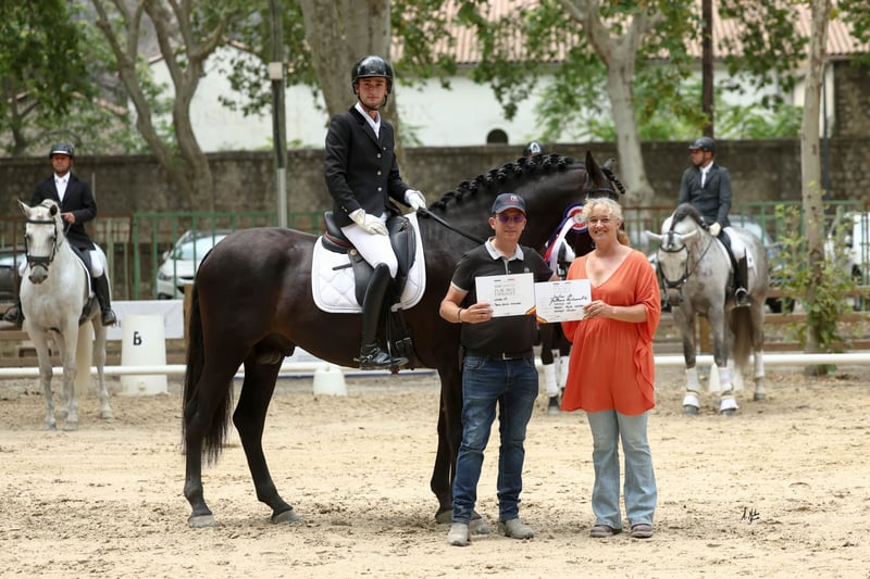 Op zoek naar een uitzonderlijke hengst voor uw merries? Ontdek Jango, een majestueuze zwarte hengst die elegantie, kracht en een uitzonderlijk karakter combineert. Prestigieuze afstamming: Guardiola x Escalera, verrijkt met Soto Gil-lijnen, afkomstig uit de elite van Corinto. Functionaliteitskampioen: Bekroond in Beaucaire in 2024 — bewijs van perfecte bouw en functionaliteit. Indrukwekkende schofthoogte: 1,72 m vol elegantie en uitstraling. Opmerkelijk temperament: Een evenwichtig karakter, ideaal om vertrouwen en wendbaarheid door te geven. Beschikbaarheid van sperma: In vers sperma (IAF), diepvries (IAC), gekoeld (IAR) en versterkt gekoeld (IARR). Reserveer nu uw dekking en geef uw veulens een veelbelovende toekomst! Neem vandaag nog contact met ons op voor meer informatie of om een bezoek te plannen. ✨
