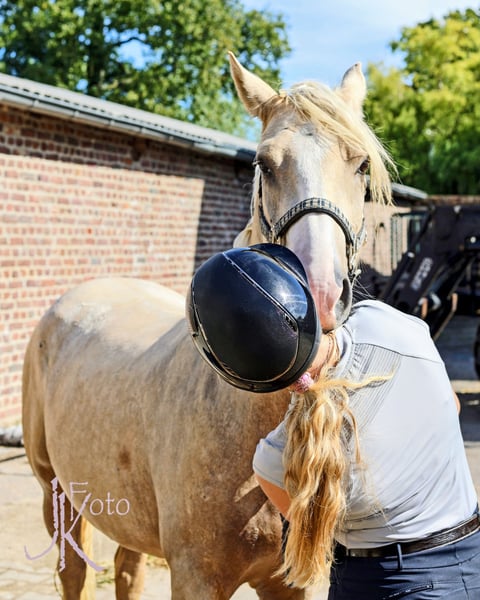 Ce magnifique cheval, descendant de Diamond Touch NRW, recherche une famille idéale. Lien vidéo : https://youtube.com/shorts/FgbQpGwQo3c?si=SWBXOkjkzYgBheLd Il a été solidement monté en dressage, toujours en douceur, sans jamais faire un faux pas. Que ce soit en salle, sur le terrain de saut ou lors d’une promenade, il prouve son caractère exceptionnel. Il se laisse monter calmement même avec un pad, et a été très bien manipulé dès son plus jeune âge, y compris par de plus petits enfants. Il a récemment été monté par une fille de 7 ans. Il reste détendu dans son box pour les câlins avec les enfants, mais sous la selle, il est suffisamment fin pour révéler tout son potentiel en compétition FEI. Il saute volontiers de petits obstacles, et nous attendons de lui qu’il fasse aussi bien en concours qu’à la maison, en remportant des classements en épreuves de saut d’obstacles et de dressage. Il couvre bien (la cavalière sur la photo mesure 1,68 m) et se montre facile à manipuler et à mener aux rênes. Ce cheval de rêve possède trois allures très bonnes, avec un potentiel FEI. Il est très gentil chez le maréchal – même lors de la pose des fers pour la première fois – et a été tondé sans sédation, sans problème. De bonnes radiographies, y compris du dos, sont déjà disponibles. Un poney de rêve pour une mère/fille ou une fratrie, où un cavalier pourra continuer à le faire progresser. Vidéos et autres informations au : 0177 275 9886 Instagram : https://www.instagram.com/s/aGlnaGxpZ2h0OjE3OTA5OTYzNDQyMjI2MzM4?story_media_id=3727113648335528103_7420643624&igsh=MTJteDBpYTU5Mmc3dA== TOUTES LES INFORMATIONS SONT FOURNIES SANS GARANTIE, CAR ELLES SE BASENT SUR LES IMPRESSIONS SUBJECTIVES DU PRESTATAIRE ET/OU DU Vendeur.