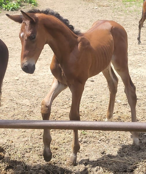 Graziles fine sporty HF ! Will be big , over 170 , more like 175 . TOP movement in all three gaits . What more could a rider's heart desire ? Come by , have a look and make me an offer . Please no anonymous inquiries .