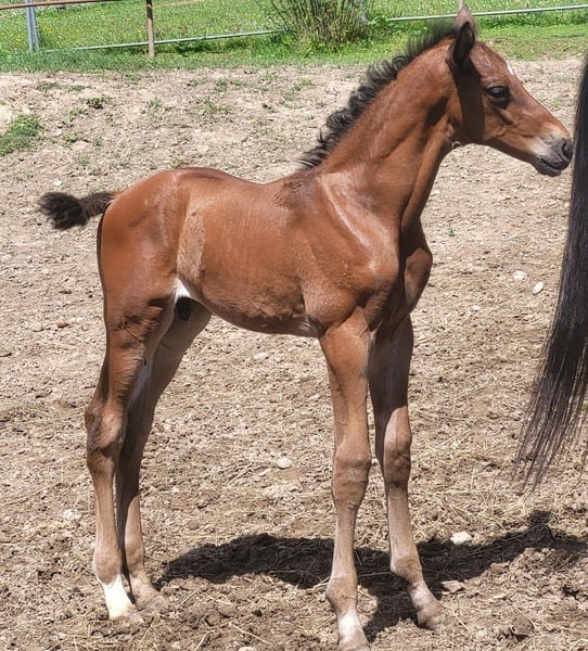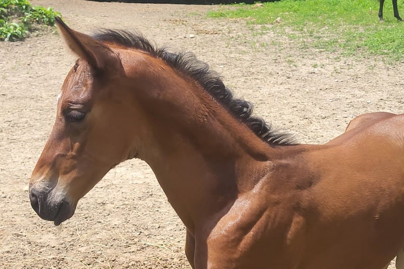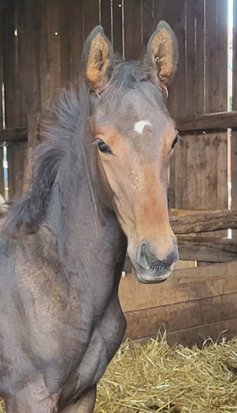 Voici la traduction en français : --- Un cheval de sport élégant et fin ! Il deviendra grand, plus de 1,70 m, plutôt 1,75 m. Excellente locomotion dans tous les trois allures. Cœur de cavalier, que demander de plus ? Venez le voir, le découvrir et me faire une offre. Veuillez s'il vous plaît ne pas envoyer de demandes anonymes. ---