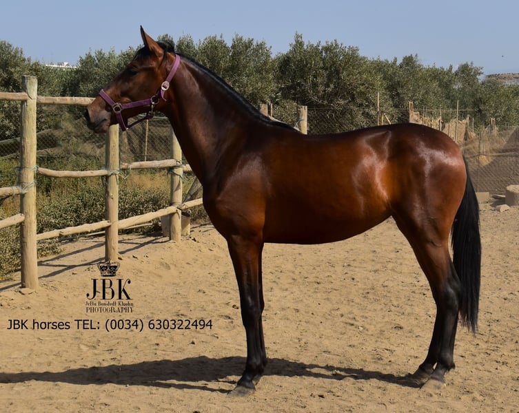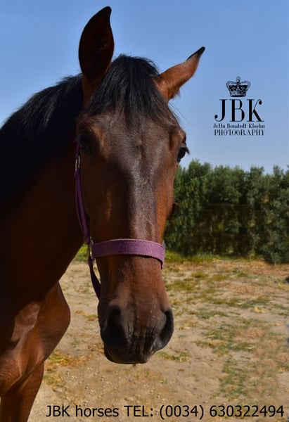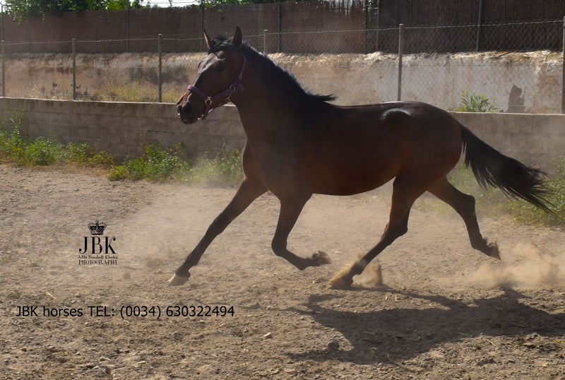 ️WHATSAPP 003463022494 Bonita est la fille d'une jument PRE approuvée, son père est également un PRE, mais n'est pas approuvé, elle a donc son passeport européen sans preuve de race. C'est une jument très amicale et attentive, qui s'entend très bien dans un troupeau. Bonita a été élevée de manière raisonnable et connaît également très bien l'ABC des poulains. Ses mouvements sont excellents, quand elle trotte, elle semble flotter au-dessus du sol, c'est un plaisir de la regarder. Sa taille finale est estimée à environ 1,64 mètre +/- 2 cm.