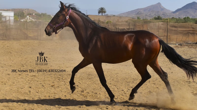 ️WHATSAPP 003463022494 Bonita jest córką ogierki PRE, jej ojciec również jest PRE, ale nie jest ogierem zarejestrowanym, dlatego ma swój paszport UE bez dowodu rasy. Jest bardzo przyjazną i uważną klaczą, która dobrze odnajduje się w stadzie. Bonita została rozsądnie wychowana i bardzo dobrze zna podstawy dla źrebiąt. Jej ruchy są doskonałe, gdy stępuje, dosłownie unosi się nad ziemią, a oglądanie jej sprawia przyjemność. Jej ostateczny wzrost szacuje się na około 1,64 m +/- 2 cm.
