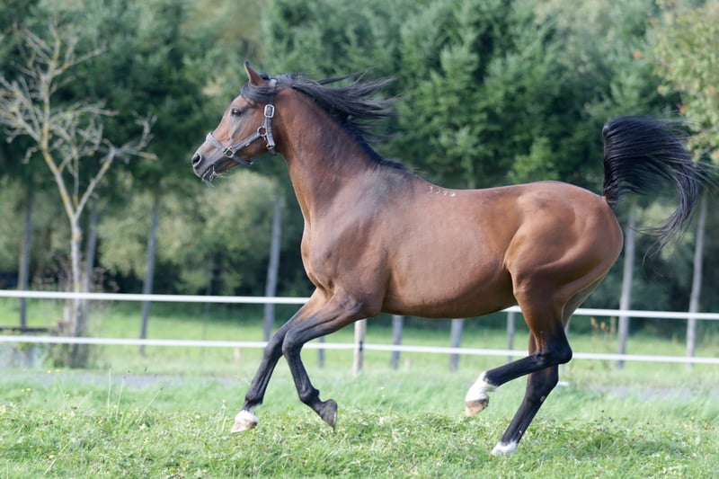 Nato nel 1999 e cresciuto a Tersk. La foto di copertina lo ritrae all'età di 22 anni. La sua fattrice ha dato alla luce 15 puledri vivi e ha vissuto fino a 34 anni. 50 figli impressionano per il loro movimento, la cavalcabilità, la disponibilità a esibirsi e le buone basi. I suoi figli e figlie hanno successo nel dressage fino al livello avanzato (S) e nell'endurance fino al LDR. L'associazione allevatoriale gli ha conferito il titolo d'élite di VAZP sulla base delle prestazioni della sua progenie. La progenie di Kamerton è visibile anche nelle foto. Informazioni dettagliate sulle prestazioni della sua progenie sono disponibili sul nostro sito web: www.vogelsberg-araber.de Foto: Svenja Verheyen, Sabinne Althaus, Christa Dott, Gudrun Waiditschka, Stefanie Nicolin
