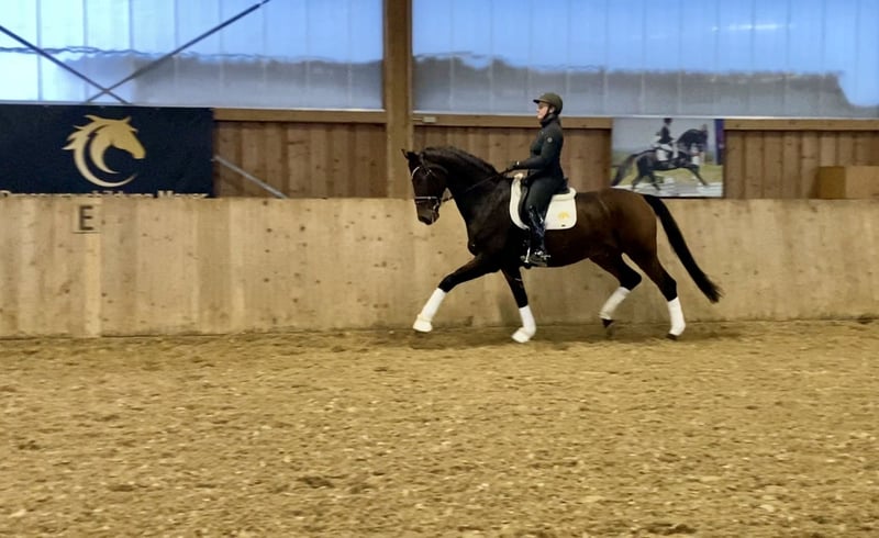 Verkaufe Hannoveraner Wallach – Perfekter Dressurpartner Zum Verkauf steht ein eleganter und gut ausgebildeter Hannoveraner Wallach, geboren im Jahr 2015. Mit seinem beeindruckenden Stockmaß von 176 cm ist er ein wahrer Blickfang und bietet optimale Voraussetzungen für anspruchsvolle Dressurarbeit. Der dunkelbraune Wallach überzeugt durch sein angenehmes Temperament, seine Lernbereitschaft und seine elegante Erscheinung. Er ist gut ausgebildet und zeigt gute Grundgangarten sowie eine vielversprechende Entwicklung im Dressursport. Er ist bereits mit Junioren A* siegreich und A** platziert. Er ist jetzt auf sicherem L Niveau und beherrscht die Seitengänge im Trab und im Galopp. Er eignet sich sowohl für ambitionierte Freizeitreiter als auch für den Turniersport. Bei Interesse oder für weitere Informationen stehe ich gerne zur Verfügung. Besichtigung und Probereiten nach Vereinbarung möglich.