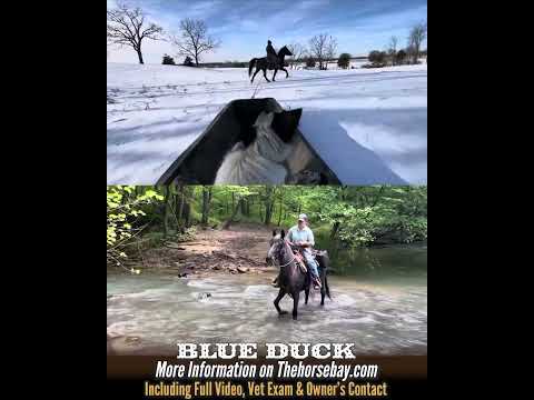 Hello everyone, my name is Blue Duck, or just Blue for short. I am a blue roan ky mnt, 12 years young, 15 hands tall, and looking for my perfect human family! I’m a very laid-back, easy-going, easy guy to get along with. I’ve taken care of all my riders, from kids to more advanced ppl. I love trail riding and exploring new places, but my favorite thing to do is check cattle and sometimes even rope calves. I hold them while my mom gives meds or ear tags. My mom has trained me to do a lot of neat stuff, like neck rein, side pass, open gates, and move all my body parts. I, of course, would like to have the best rider I can find to teach me more cool stuff, but I don’t mind teaching less experienced riders or giving pony rides to kids. I’ll do just about anything for a treat! My skills : – stretch out so my shorts can get on – Load myself on the trailer – I can sort/gather / rope cattle – Pick up my feet when my mom says foot – I will cross any stream, creek, ditch, or log – Can ride out by myself or in big groups – Ground tie – Side pass to the mounting block Up to date on all vaccines, Coggins, and dental