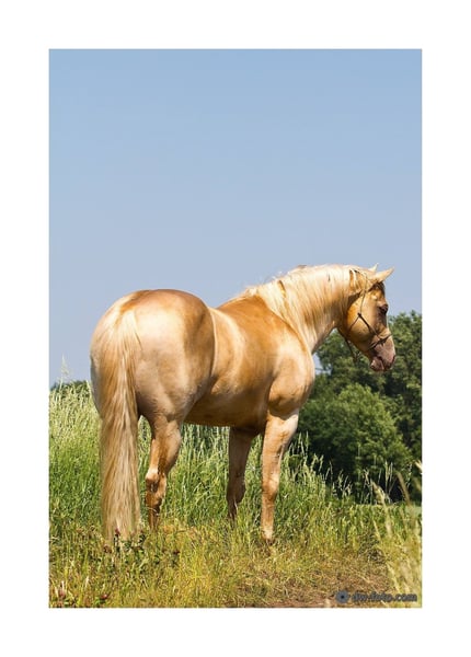 Dc Cool Goodys Champ Ein Quarterhengst der überzeugt!!!! Gekört und Leistungsgeprüft ins Hengstbuch1 des Zsse eingetragen. Natürlich DQHA Pass mit Zuchtbucheintragung für die Quarter, Paint und Zsse. AQHA Papiere selbstverständlich. Hat ein tolles Gebäude, eine Sonderlakierung in Gold Champagne und wie man schon in seinem Namen liest, er ist cool und gelassen. Er will immer gefallen, ist sehr gelehrig und bringt viel Talent mit. Ein Traumpferd in goldener Jacke und Top Charakter. Seine Nachzucht zeigt sich sehr gelerig und sind leicht zu arbeiten. Abstammung: http://www.allbreedpedigree.com/dc+cool+goodys+champ GBED N/N, HERDA N/N, PSSM1 N/N, MH N/N, HYPP N/N, OLWS N/N, IMM N/N Stockmass 154 cm Decktaxe 2025 500€ für Quarter/ Paint =580 Euro + 80 euro Buchungsgebühr 300€ für andere Rassen und ZSSE = 380 Euro +80 Euro Buchungsgebühr Weitere Infos auf meiner HP www.klus-qh.de DC kann auch gerne besichtigt werden.