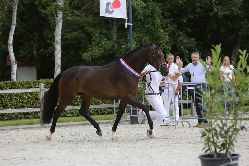 Oh Darling (2019) to imponująca czarna kasztanowata klacz o imponującym wzroście 1,73 m. W 2022 roku została wybrana na mistrzynię Centralnej Wystawy (CK) w Groningen i reprezentowała kraj na Narodowej Wystawie Koni i źrebiąt (NMK) w Ermelo, co potwierdza jej wyjątkową jakość. Uzyskała 85 punktów za budowę i 80 punktów za ruch. Oh Darling jest córką ogiera I’m Perfect STH i pochodzi z elitarnej klaczy sportowej-dresage PROK D-OC Donna STH (v. Florencio I). Jej ojciec odniósł sukcesy w sporcie, co czyni ją genetycznie bardzo interesującą dla hodowli. Podczas oceny została opisana jako: „Dobrze rozwinięta klacz o harmonijnych proporcjach i wyróżniającej się pięknej przedniej części ciała. Ma mocne połączenia w sylwetce i prawidłowe fundamenty. Porusza się z dobrą siłą, przestrzenią, techniką i właściwą postawą.” W kontaktach Oh Darling jest spokojną i schludną klaczą. Była już pod siodłem, jednak nie jest najłatwiejsza w jeździe. Dlatego celowo oferujemy ją jako przyszłą matkę hodowlaną. Dla osoby inwestującej w sprawdzoną jakość i silne genetyki jest to wyjątkowa okazja. W pełni zatwierdzona rentgenologicznie i bez defektów.