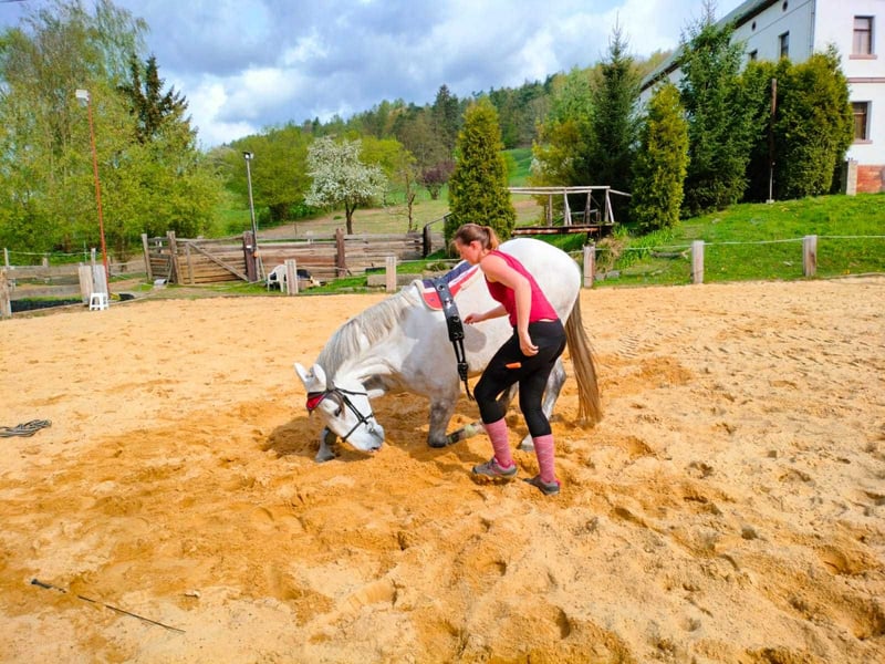Na sprzedaż: 7-letni ogier kladruber, piękny biały koń o eleganckim, klasycznym wyglądzie typowym dla rasy. • Ujeżdżenie: szkolenie na poziomie L, w przygotowaniu do poziomu S. Przejścia piaf nie są jeszcze w pełni potwierdzone. • Zdrowie: czyste zdjęcia RTG, w tym kręgosłup, koń zdrowy i bez dolegliwości. Nigdy nie zdiagnozowano u niego wrzodów (lecz leczony jako wrażliwy koń na wszelki wypadek). Nie cierpi na świąd mugowy. Dwa dodatkowe zęby – typowe dla rasy, sprawdzone przez specjalistów i w porządku. • Temperament: łagodny, niezawodny, lecz naturalnie energiczny i nieco żywiołowy (w ramach spokojnego typu kladruber). Najlepiej dla pewnego siebie jeźdźca, który ceni sobie reagującego konia. • Zachowanie: łatwy w terenie, nie dominujący ani uległy. Dobrze dogaduje się z ogierami i klaczami (najlepiej jako jedyny ogier w towarzystwie klaczy). • Pod siodłem: bezpieczny na przejażdżkach, sam lub w grupie – może iść pierwszy, ostatni lub obok. Spokojny, nie kopie ani nie rżeni. Po kilku dniach odpoczynku najlepiej pozwolić mu się rozprostować lub przejechać rekreacyjnie przed kolejnym treningiem. • Obsługa: świetny z podkuwaczem, weterynarzem, do pielęgnacji itp. ładne, mocne kopyta. Szukam kochającego domu, z regularną pracą i wypasem. 💰 Cena: do negocjacji dla odpowiedniego domu. Zależy mi na jego miejscu docelowym i chętnie pozostanę w kontakcie z nowym właścicielem. 📩 Więcej zdjęć i filmów dostępnych na życzenie przez WhatsApp.