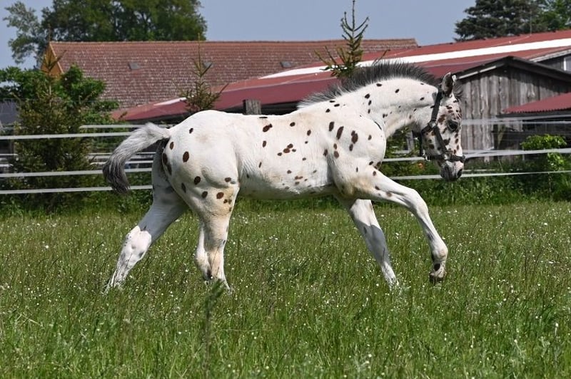 Bellissimo stallone tigriato (3 anni) da Carlsson vom Dach (Knabstrupper, 163 cm) proveniente da Schwedenlindes Jenny (Welsh B di Tassilo, 140 cm), con ottimi risultati generali. Questo cavallo molto particolare, con una colorazione speciale, ha attirato l’attenzione per i suoi punti ben visibili. La madre Schwedenlindes Jenny ha già prodotto numerosi pony sportivi con doppia predisposizione, stalloni approvati e puledri di successo, oltre a essere stata premiata con il titolo di Stutfohlen e aver avuto successo in campo jumping con i bambini. Si stima che raggiungerà circa 154-158 cm di altezza al garrese. Per ulteriori informazioni, si prega di contattare esclusivamente telefonicamente, tramite SMS o WhatsApp al numero 0049 1725488966.