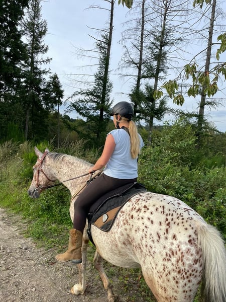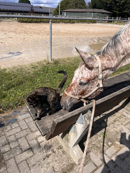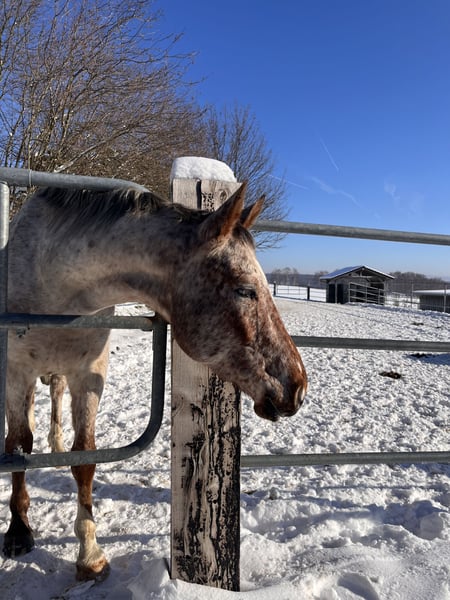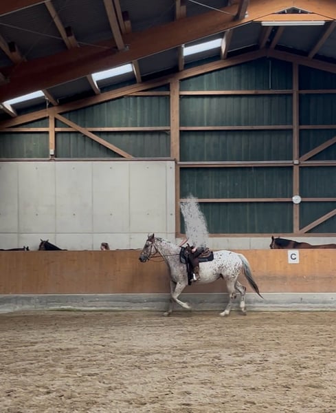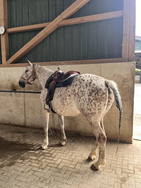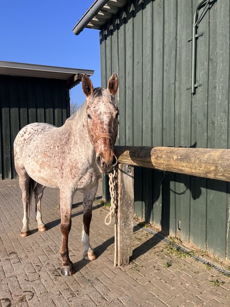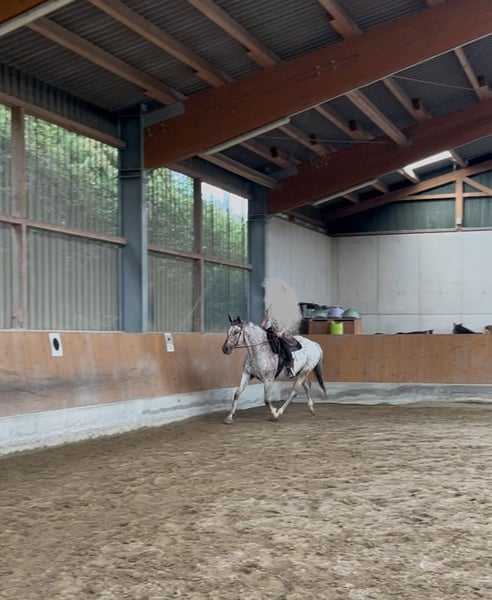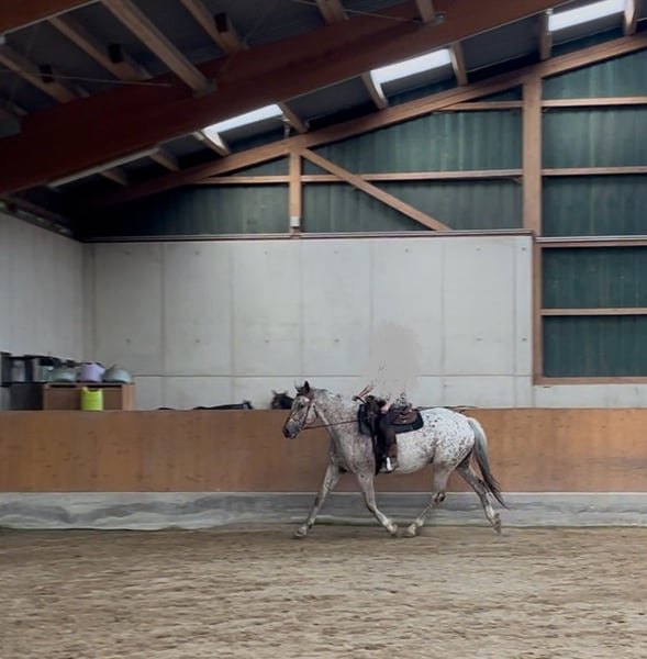 Ik verkoop mijn bijna 6-jarige Knabstrupper ruin Lino. Hij is een sportief gebouwd paard met een stokmaat van ongeveer 1,70 m. Hij heeft zijn eerste levensjaren op natuurlijke en diervriendelijke wijze op de wei doorgebracht bij de fokker, voordat ik hem overnam en hem voorzichtig heb geïntroduceerd aan mensen en de dagelijkse omgang. Door deze zachte start in het leven als rijpaard is hij nu een zeer leergierig, open en mensgericht paard dat altijd gemotiveerd is om te werken. Hij is momenteel goed aangezet en toont zich in de rijhal en op de buitenbaan zeer werkwillig. Zijn ware kalmte bewijst hij in het terrein: hij gaat zowel in een groep als volledig alleen ontspannen naar buiten – en dat, indien gewenst, zelfs zonder zadel. Hij is een paard dat vertrouwen heeft in zijn ruiter en een hechte band zoekt. Wat gezondheid en verzorging betreft, is hij altijd betrouwbaar verzorgd. Hij is hoefbevangen, wordt regelmatig door de hoefsmid en de tandarts bekeken en is volledig gevaccineerd. Momenteel woont hij in een actiefstal in een groep met alleen ruinieren. Omdat deze veelzijdige beweging en sociale contacten hem zeer goed doen, wens ik voor zijn toekomst een vergelijkbare huisvesting, bijvoorbeeld in een actief- of open stal. Dit is geen overhaaste verkoop. Omdat zijn welzijn mij zeer aan het hart ligt, gaat het absoluut om de juiste match, niet om de prijs. Ik zoek iemand die dit geweldige karakter weet te waarderen en hem verder wil ontwikkelen. Lino is te ontmoeten in de regio Keulen/Bonn. Bij serieuze interesse hoor ik graag een bericht met een korte beschrijving van hoe zijn nieuwe thuis eruit zou zien. Een kennismaking is, in overleg, altijd mogelijk.