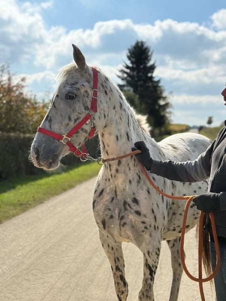 Zum Verkauf steht eine sehr freundliche 5 Jährige Kanpstrupper-Stute mit einem Stockmaß von ca. 1.56m Sie ist an Sattel und Reiter gewöhnt zu uns gekommen und befindet sich nun in fundierter Ausbildung. Derzeit geht sie sicher in Schritt und Trab in der Halle und macht Anfänge im Gallopp. An der Hand war sie bereits im Gelände und zeigt sich aufmerksam aber ruhig. Sie ist sehr lernwillig und genießt die Zeit mit ihrer Bezugsperson. - Laute und Hupende Autos bringen sie nicht aus der Fassung. Aufgewachsen im größen Herdenverband und nun in Haltung in einer Box mit Paddock kennt sie beinahe jede Haltungsform. Tagsüber ist sie mit ihren Mädels auf der Koppel oder dem Schlechtwetterauslauf und zeigt sich auch hier sehr offen und zugewandt. Die Stute sucht jemanden, der eine gute Grundausbildung wertschätzt und ihr einen schönen Platz bieten kann. Zur weiteren Ausbildung kann sie gerne noch bleiben. Auch die Möglichkeit, das Pferd nach dem Kauf vor Ort in Beritt zu lassen und zusätzlichen Unterricht zum Zusammenwachsen mit dem Zukünftigen Partner wird geboten. Für einen Besichtigungstermin berechnen wir für das Vorführen und Probereiten 40€ pro Pferd. Diese werden beim Kauf zurückerstattet.