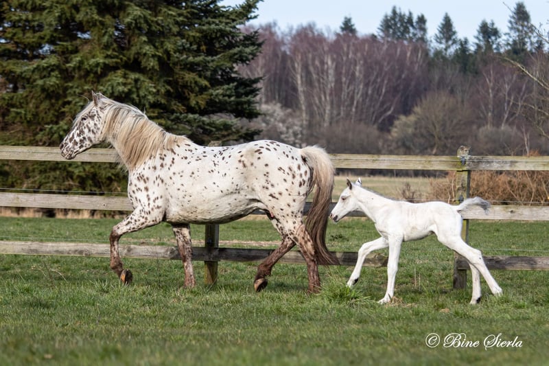Homozygous zwarte few spotted is het meest gewilde voor Knabstrupper fokkerij, omdat het garandeert dat een gevlekte veulens geboren wordt als je een homozygous combineert met een effen kleur zoals zwart, bruin, rood, etc.