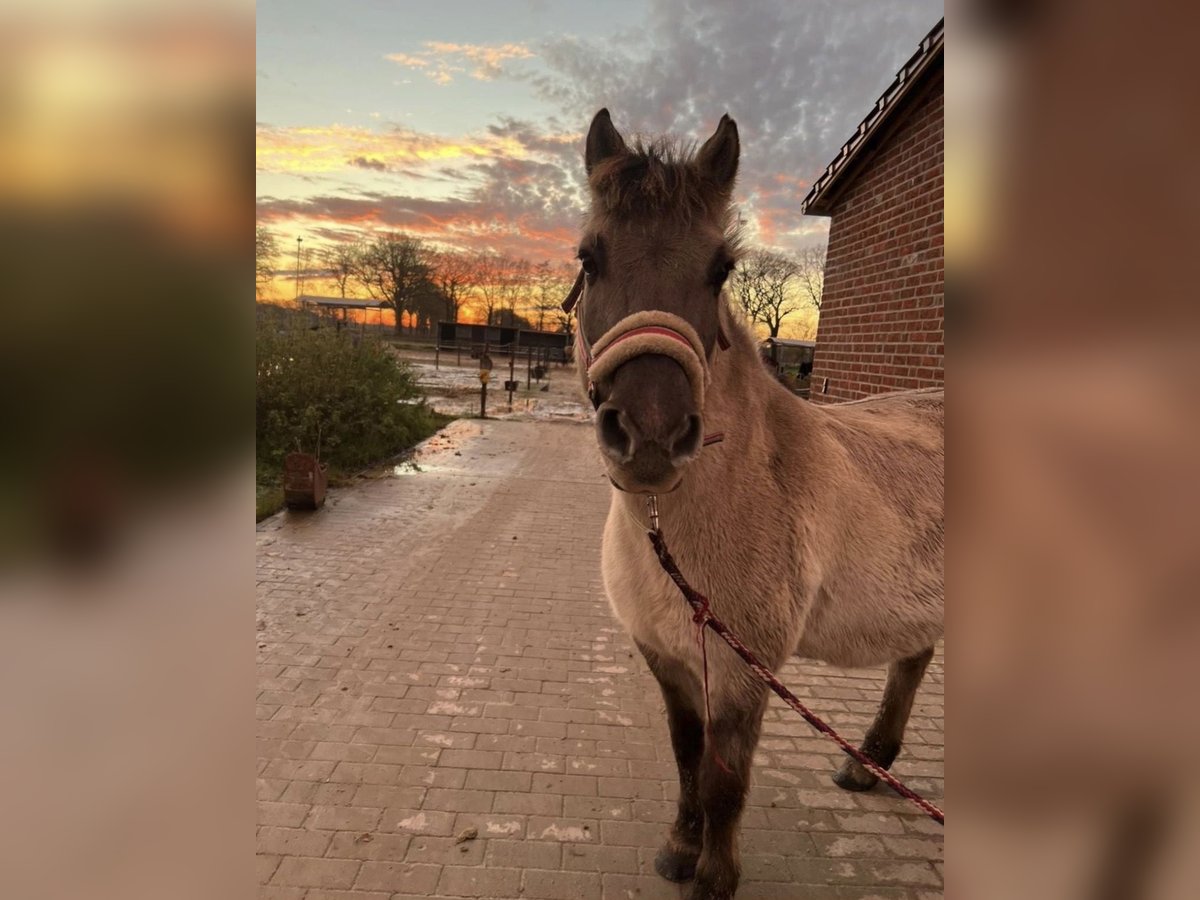 A truly lovable, characterful pony gelding who is very well-behaved in handling, but as is typical for a pony, not a pure children's pony. He is rideable in all three gaits and enjoys jumping very much. He is a lower-ranking horse, making him very compatible with other horses, and he prefers to be in company. He is not a stressor within the herd. Our Konik gelding originally came from Berlin to us in the North, as he suffered from equine asthma. Since he has been here, he has been symptom-free, healthy, and fit. It is important that he receives haylage instead of hay, then he has no issues. He is a fantastic pony for experienced riders or teenagers looking for a sensitive, friendly pony that enjoys work and is happy both in the arena and in the field. He is 15 years old and stands approximately 135 cm at the withers. If you are interested or have questions, please feel free to contact us – we look forward to hearing from caring people who can offer him a loving home.