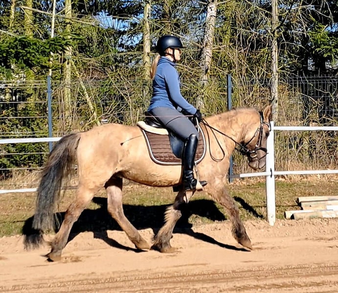 Konik Gelding – Perfect for trail riding! 4 years old, approximately 14.1 hh (still growing) Well-broken and confident in the terrain. Familiar with lunging, riding arena, and rides out alone. Training level appropriate for age. Fullbred with pure lineage, Free of vices. Excellent health. Suitable for open stable housing. Videos available. Transport possible.
