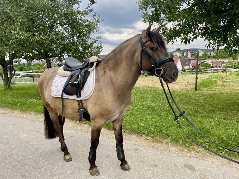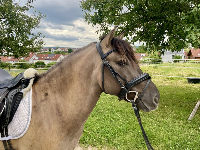 Zum Verkauf steht unser sechsjähriges, absolut menschenbezogenes und hübsches Konik-Pony Nawaro. Für ihn suchen wir eine erfahrene Bezugsperson, die klar mit ihm kommuniziert und in ihm einen zuverlässigen Freizeitpartner sieht. Nawaro ist ein schlaues Pony, das gerne abwechslungsreich arbeitet. Er kennt die Arbeit an der Longe/Doppellounge, beherrscht die Bodenarbeit bereits gut und zeigt beim Laufen lassen, bei der Stangenarbeit sowie beim Freispringen stets große Motivation. Er lässt sich in allen drei Grundgangarten schön locker und ordentlich reiten. Seine große Leidenschaft ist das Springen. Er ist ein souveräner Ausreitpartner, der sich von Autos, Motorrädern, Hunden und anderen Alltagsgeräuschen nicht aus der Ruhe bringen lässt. Er eignet sich auch zum Wanderreiten. Nawaro ist ein leichtfuttriges Pony. Er benötigt daher eine Haltung, bei welcher das Futter, sowie der Weidegang kontrolliert wird. Er ist den Umgang mit Kindern gewohnt, wird aber nicht als Kinderpony abgegeben. Nawaro hat definitiv das Herz am richtigen Fleck und ist für eine fortgeschrittene Reiterin/Reiter ein toller Freizeitbegleiter, mit dem man entspannt die gemeinsame Zeit genießen kann und dabei großen Spaß haben wird. Seine geliebten Streicheleinheiten am Kopf dürfen dabei natürlich nicht zu kurz kommen. Nawaro wurde die letzten zwei Jahre im Schulbetrieb eingesetzt, ist vollständig geimpft und wird regelmäßig vom Hufschmied bearbeitet. Bei Interesse oder weiteren Informationen melden Sie sich gerne bei uns. Es gilt Platz vor Preis. Für das Probereiten erheben wir eine Gebühr von 30,00 Euro.