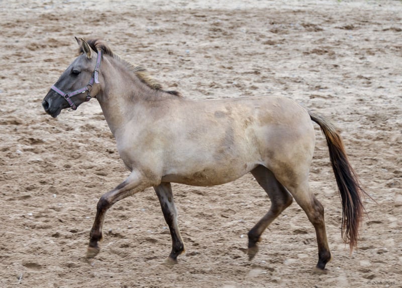 Beautiful, one-of-a-kind Konik filly for sale! This charming silver grullo currently stands at 130 cm, with long legs and an athletic build. She comes from a sport Konik line. Both parents are over 1.45 m. The mare captivates with her friendly, open, and confident nature. She loves cuddles and long walks (she walks easily on her own with her human). Manja is halter trained and knows the first lessons on the ground. She is familiar with farm life and all its noises (tractors, trucks, motorcycles and cars, dogs, cows, alpacas, and much more). She is vaccinated, regularly dewormed, and behaves well at the farrier and in the trailer. Special price for stable boarding (minimum 1 year). Here she remains covered by liability and surgery insurance within the herd. These costs are therefore waived for the first year. If you are interested in this great young mare with lots of potential and would like more information, please do not hesitate to get in touch. I look forward to hearing from you!