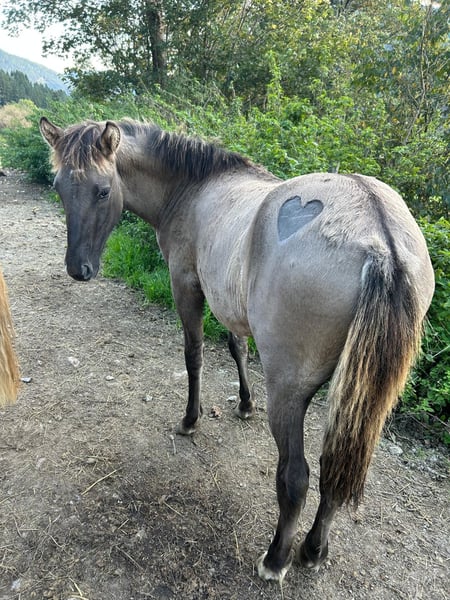 Hengstjährling,kennt das Fohlen ABC, kann auf Wunsch gegen Kostenübernahme gelegt werden.