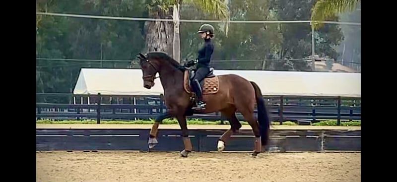 Currently 9 years old and in full work at a top performance barn, he is confidently schooling all PSG movements and showing true Grand Prix potential, with naturally active piaffe, expressive passage, and the beginnings of one-tempis.