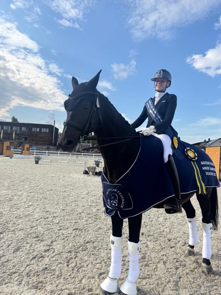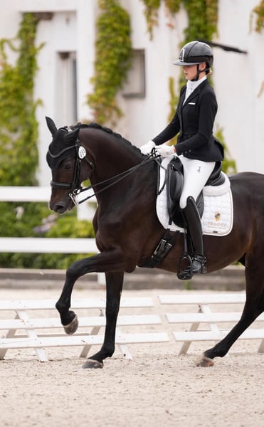 This gorgeous black KWPN Glamourdale gelding has been competing successfully this year at Young riders/St. Georg level. He is a great GP prospect as he can jump as many one tempis as you can imagine and shows talent for passage and piaffe. He is a talented and eye-catching gelding with elastic gaits, comfortable to sit and alway willing to work. This season he successfully competed with a young rider, for whom it was her first year and first time showing at this level achieving consistent scores above 66% in Young Rider classes as well as St. Georges and above 68% in Junior classes. ✅ Suitable for both ambitious amateurs and professionals ✅ Excellent to handle on the ground, easy for the farrier and during transport ✅ Used to daily turnout and horse walker ✅ Ridden both in snaffle and double bridle without any issues The horse can be tried in Prague, located 20mins from the Prague airport, the Czech Republic. Kazzburga offers the perfect combination of temperament, rideability and talent — a trustworthy and elegant sport partner ready to continue his career with his next rider.