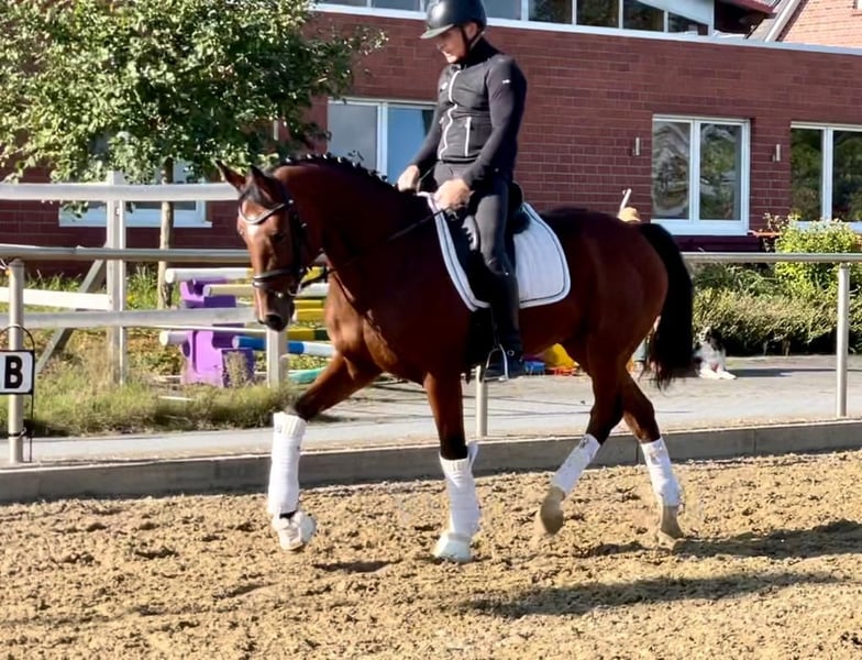 Sympathetic 8-year-old bay KWPN gelding. "Kevin" stands out because of his absolutely pleasant nature! He is completely uncomplicated to deal with and already experienced in tournaments. It can be used by anyone and can be used immediately in dressage as well as in show jumping. We can also imagine "Kevin" very well as a team horse. To be operated by weaker and insecure riders, it gives the necessary security. "Kevin" can be test-ridden at any time. We look forward to hearing from you.