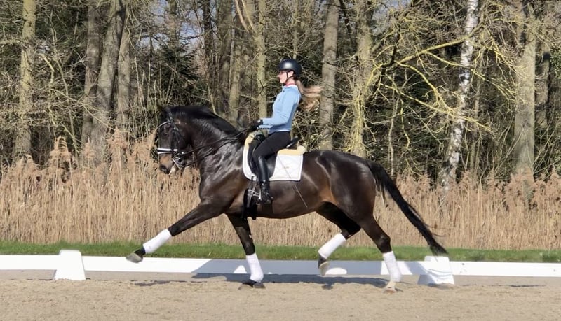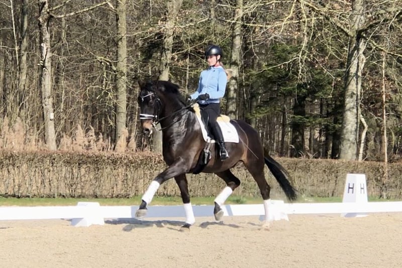 This 11-year-old gelding has extensive competition experience up to zzz. Well-behaved with no vices. X-rays available. Simple piaffe and passage, starting with one. Can be ridden in a snaffle or double bridle. Gentle and easy to handle, suitable for loading, farrier, veterinarian, etc. He is familiar with the lunge line. Location: Belgium.