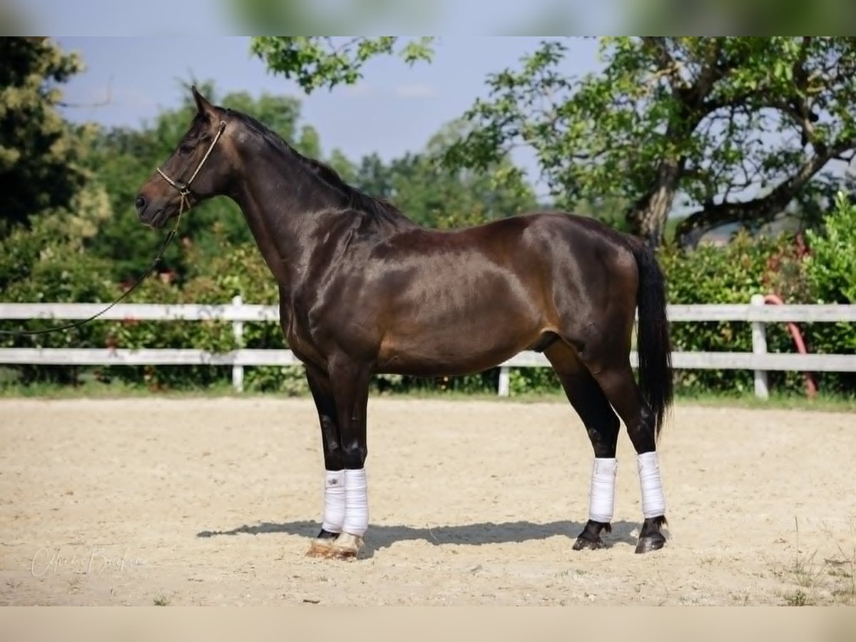 Kazz est un superbe hongre KWPN de 11 ans, au tempérament profondément attachant. C’est avant tout un cheval de relation, sensible, généreux et très à l’écoute, qui se distingue par la finesse de son contact et son envie constante de bien faire. D’environ 1m67, Kazz présente un modèle harmonieux et équilibré. Mais ce qui marque surtout lorsqu’on le découvre, c’est sa qualité de présence, sa douceur et la connexion qu’il cherche avec son cavalier. Kazz a été travaillé avec sérieux et régularité, ce qui lui permet aujourd’hui d’être posé, fiable et agréable dans le travail. Il a connu la compétition jusqu’en Amateur 2, mais ce n’est absolument pas ce qui définit son profil aujourd’hui. Il n’est pas proposé comme un cheval “à performer”, mais comme un partenaire de vie, pour quelqu’un qui souhaite évoluer à son rythme, dans le respect et la construction. C’est un cheval : proche de l’humain, calme et respectueux au quotidien, doté d’un contact fin, qui demande de la justesse. Kazz s’adresse à une personne attentionnée, calme et à l’écoute, prête à prendre le temps de créer une vraie relation. Il donnera énormément à quelqu’un qui saura fonctionner dans la douceur, la cohérence et la patience. Il conviendra parfaitement à un(e) cavalier(e) qui aime : prendre le temps de travailler à pied, créer un lien de confiance au quotidien, construire une relation sur la durée, privilégier la compréhension, le ressenti et le plaisir partagé. Kazz bénéficie d’un suivi exemplaire depuis plusieurs années : travaillé par une professionnelle depuis 2 ans, maréchalerie soignée, suivi régulier (ostéopathie, soins, saddle-fitting, bit-fitting, nutrition). Il vit au pré en troupeau, avec foin à volonté, ce qui participe largement à son équilibre mental et à sa sérénité. Kazz travaille aussi bien : monté, à la longe, aux longues rênes, en liberté, en extérieur, il sort à plusieurs où il se montre calme et agréable. Il possède également un bon coup de saut, peu exploité, mais intéressant pour varier les plaisirs. En résumé : Kazz est un cheval de cœur, équilibré, bien éduqué et profondément attachant. Notre priorité pour lui : - la qualité du projet - la relation humain-cheval - le respect et la cohérence - le plaisir partagé au quotidien Une très belle opportunité pour une personne souhaitant prendre le temps, créer un vrai lien, et évoluer sereinement en loisir / dressage avec un partenaire sensible, fin et profondément humain.