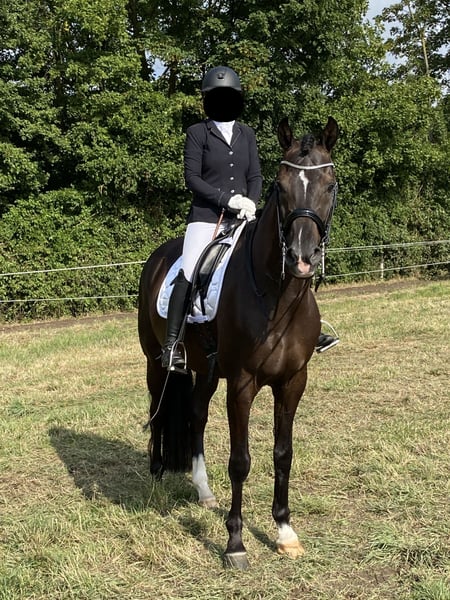 Ich verkaufe ihn schweren Herzens aus persönlichen Umständen. Für ihn wünsche ich mir ein 5-Sterne-Zuhause mit viel Weidegang und einem Reiter oder einer Reiterin, der/die Lust hat, regelmäßig mit ihm zu arbeiten, Freude an der Dressur hat und gern Ausritte unternimmt, ohne dass jedes Wochenende ein Turnier geplant sein muss.