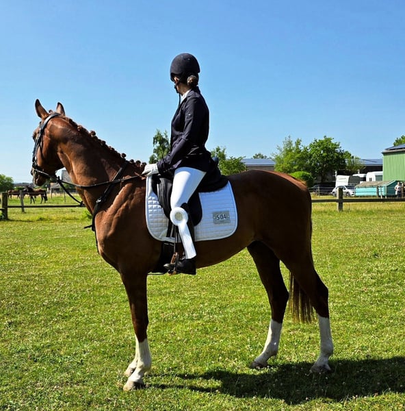 Ehrlicher, vorwärtsgehender KWPN Wallach (12) – für erfahrene Reiter Zum Verkauf steht unser 12-jähriger KWPN Wallach Junior (ca. 1,64 m), ein zuverlässiger Partner mit klarem Kopf und angenehmem Wesen. Junior ist auf sicherem A-Niveau im Springen ausgebildet und verfügt über Turniererfahrung. Er arbeitet gerne mit, bringt Go mit und möchte im Parcours entsprechend geritten werden. Mit einem erfahrenen Reiter ist er gut regulierbar und zeigt sich motiviert bei der Arbeit. Bis zuletzt wurde Junior von unserer 12-jährigen Tochter geritten, die mit ihm sicher im Gelände unterwegs war – in allen Gangarten, sowohl alleine als auch in der Gruppe. Im Parcours zeigt er jedoch deutlich mehr Vorwärtsdrang, weshalb er für sie dort auf Dauer zu anspruchsvoll geworden ist. Im Gelände ist Junior absolut unerschrocken und jederzeit verlässlich. Im täglichen Umgang ist er unkompliziert: schmiedefromm, verladefromm und sehr angenehm im Handling. Zudem ist er absolut verträglich mit anderen Pferden. Als rangniedriges Pferd fühlt er sich in einer klar strukturierten Haltung am wohlsten und frisst am liebsten in seiner eigenen Box. Junior ist kein Anfängerpferd. Bei regelmäßiger und sinnvoller Auslastung sehen wir ihn sehr gut im gehobenen Freizeitsport – bei einem erfahrenen Reiter, der seinen Vorwärtsdrang zu schätzen weiß. Abgabe ausschließlich in ein 5-Sterne-Zuhause. Platz vor Preis. Preis: 10.500 € VB Bei ernsthaftem Interesse freuen wir uns über eine persönliche Nachricht.
