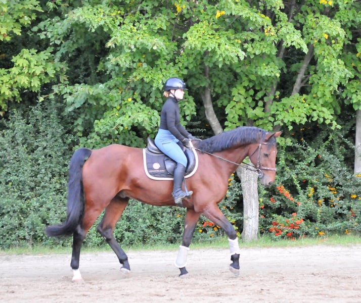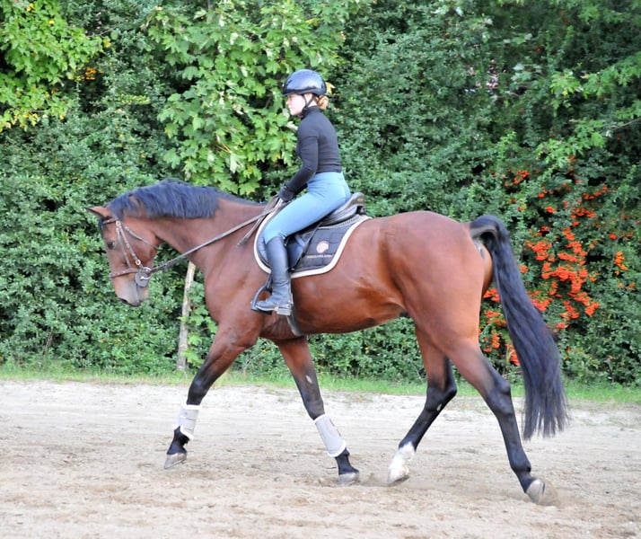 This lovable gelding is the ideal all-round partner for the whole family. He is easy to ride and is familiar with both the riding arena and the trails. Thanks to his gentle nature and fearless character, he is the perfect leisure horse – a top teacher due to his experience in show jumping. Uno has been successful up to 130 cm with a young rider in competitions but no longer wishes to jump large courses today – therefore, he is being offered only as a leisure horse. Of course, this sweet gelding would be happy with either a family or an individual as his future owner. In handling, he is absolutely well-behaved and uncomplicated, and he is also good for shoeing and loading. For more information and videos, feel free to contact via WhatsApp.