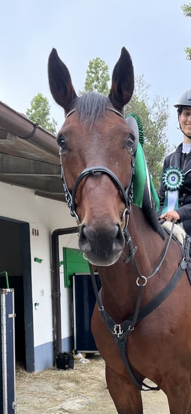 Ein freundliches und liebenswertes Pferd mit einem fröhlichen Charakter, das sich auch gut für Reitanfänger eignet, insbesondere im Springen. Es verfügt über Erfahrung sowohl mit Profis in der Klasse bis 125 cm als auch mit Anfängern in den Kategorien 110/115 cm im Wettkampf. Es ist mutig und arbeitet stets positiv, sowohl am Boden als auch beim Springen. Das Pferd kommt sowohl mit anderen Pferden auf dem Platz als auch in der Gruppe im Paddock gut aus, ist vollkommen gesund und hat keine negativen Gewohnheiten!
