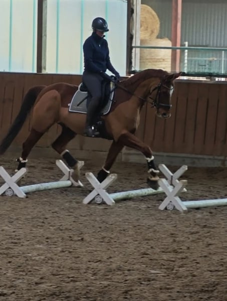 Se ofrece a la venta mi caballo KWPN, nacido en 2011. Con su llamativo pelaje alazán y una altura de 1,70 m, es un verdadero tesoro tanto en apariencia como en carácter. El versátil compañero de doma impresiona por su calidad básica agradable, su temperamento equilibrado y su disposición a complacer siempre al jinete. Está bien entrenado, es sensible en el manejo y, tanto en el campo como en grupo, es un caballo de confianza. El caballo está sano, revisado regularmente y preparado para un nuevo desafío. Es adecuado para jinetes de ocio de nivel avanzado. Es importante saber que, debido a su alergia, necesita un alojamiento libre de polvo y prefiere una alimentación con heno ensilado. No requiere medicamentos y, con la correcta atención, puede soportar cargas completas. Actualmente, vive en un paddock abierto, recibiendo por la mañana y por la tarde media ración de Gastro de Höveler y una cucharada de pienso mineral. Además, recibe forraje a libre acceso las 24 horas del día. Estoy encantado de responder cualquier otra pregunta al respecto. También puedo enviar la documentación veterinaria en caso de interés serio. Si estás interesado o deseas más información, no dudes en contactarme. Las visitas y pruebas de monta se pueden concertar previa cita. Para evitar el turismo ecuestre, se cobra una tarifa de 30 euros por la prueba de monta.