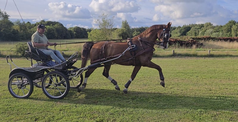 For Sale: Passionate and Versatile 16-Year-Old Gelding This willing and honest gelding (Driving en Riding) is a true all-rounder, suitable for both riding and driving. ✨ Pedigree: Manno x Wouter x Indiana ✨ Height: approximately 1.66 m (16.1 hh) ✨ Date of Birth: 01-05-2010 ✨ Color: Dark chestnut Under saddle, he has been trained in M1 dressage and shows a smooth, well-controlled ride with a good attitude. He also enjoys jumping and approaches it enthusiastically. In driving, he has extensive experience: he calmly works in single, pair, and four-in-hand (recreationally). With us, only in single harness. He is passionate, eager to work, and has a friendly character with a gentle mouth. 📩 For more information or to arrange a viewing, please send a message. #drivinghorse #Carriage #dressagehorse
