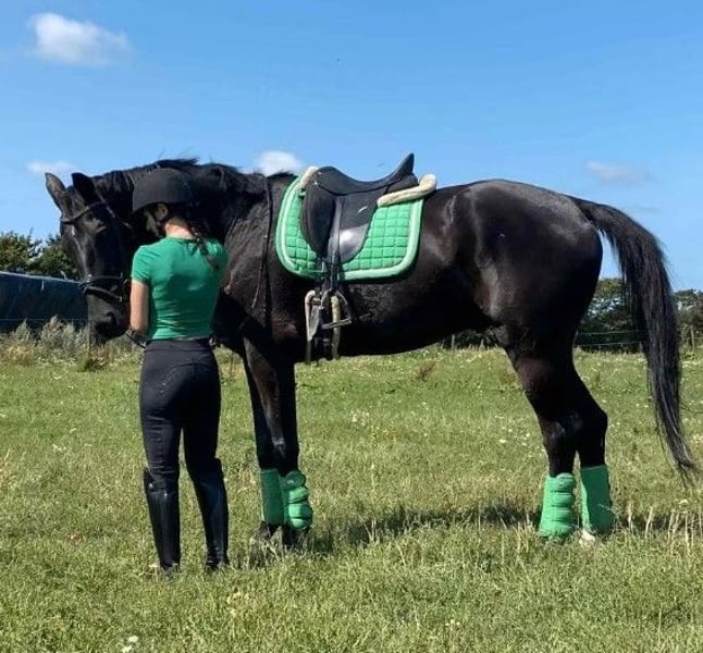 Elegant KWPN gelding for sale – ideal for dressage! This impressive black stallion was born in 2010 and impresses with his noble appearance and versatile talent. Standing at 16.1 hh, he offers the perfect size for ambitious riders looking to advance their dressage career. His balanced temperament and willingness to learn make him a reliable partner in training and competition. The gelding is well-trained in dressage and has good basic gaits. A horse that captivates with both quality and charisma – perfect for riders seeking a trustworthy partner. Please feel free to contact me for more information or to arrange a viewing.