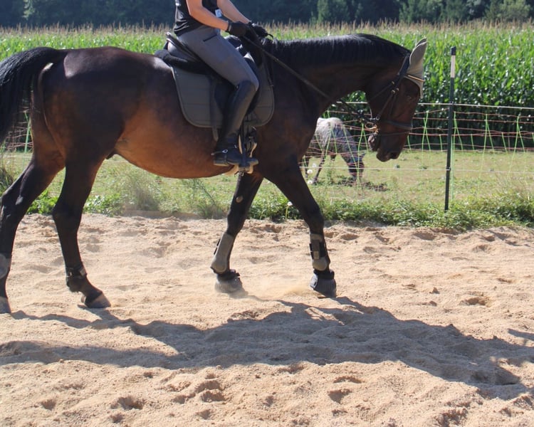 ✨ 17-jähriger Hannoveraner Wallach – zuverlässiger Freizeitpartner sucht neues Zuhause ✨ Manchmal kommt es anders als geplant. Deshalb suchen wir für unseren 17-jährigen Hannoveraner Wallach ein liebevolles und passendes Zuhause. Genaueres gerne über PN. Bei uns wird er 3–4 Mal pro Woche in unserer kleinen Reitschule eingesetzt und zeigt sich dort stets artig, zuverlässig und angenehm zu reiten – auch von Anfängern. Für Longenstunden eignet er sich ebenfalls sehr gut und macht brav mit. STM 1.68 Aufgrund eines früheren Weideunfalls taktet er leicht, was ihn im Freizeitbereich in keiner Weise beeinträchtigt. Für den Sport ist er jedoch eher nicht geeignet. Im Gelände sollte der Reiter etwas Erfahrung mitbringen. Auch wenn bei uns sogar 12-jährige Kinder mit ihm allein ins Gelände gehen, muss man erwähnen, dass er ein kleines „Schönwetterpferd“ ist: Bei stärkerem Wind oder Regen kann er schon einmal erschrecken – aber niemals kopflos, höchstens ein kurzes Zusammenzucken. Haltungsbedingt steht er aktuell tagsüber auf dem Paddock und abends in der Box. Eine reine Zweier-Wallachherde würden wir für ihn nicht empfehlen, da er hier eher nicht so sozial reagiert. Wie er sich in einer größeren Wallachgruppe oder in gemischter Herde verhält, können wir nicht sicher sagen – würden dies für ihn jedoch bevorzugen. Wer ein verlässliches Freizeitpferd sucht, findet in ihm den richtigen Partner. Zubehör kann mit erworben werden. Ein Kennenlernen sowie Probereiten können gern vereinbart werden.