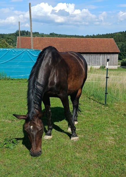 ✨ 17-year-old Hanoverian gelding – reliable leisure horse seeking a new home ✨ Sometimes things turn out differently than planned. Therefore, we are looking for a loving and suitable home for our 17-year-old Hanoverian gelding. More details gladly via private message. He is ridden 3–4 times a week in our small riding school and always behaves well, reliably, and pleasantly to ride – even for beginners. He is also very suitable for lunging work and cooperates diligently. Height at withers: 1.68 m. Due to a previous pasture accident, he has a slight gait irregularity, which in no way affects his leisure riding. However, he is not ideally suited for sport. In the terrain, the rider should have some experience. Although even 12-year-old children ride him alone in the field at our place, it should be noted that he is somewhat of a "fair-weather horse": he can get spooked by stronger wind or rain – but never headstrong, at most a quick startle. Due to his management, he currently stays on the paddock during the day and in the box at night. We would not recommend a strictly two-horse gelding herd for him, as he does not react very social here. How he behaves in a larger gelding group or in a mixed herd, we cannot say for certain – but we would prefer this for him. If you are looking for a dependable leisure horse, he could be the right partner. Accessories can be purchased together. A viewing and trial ride can be arranged gladly.