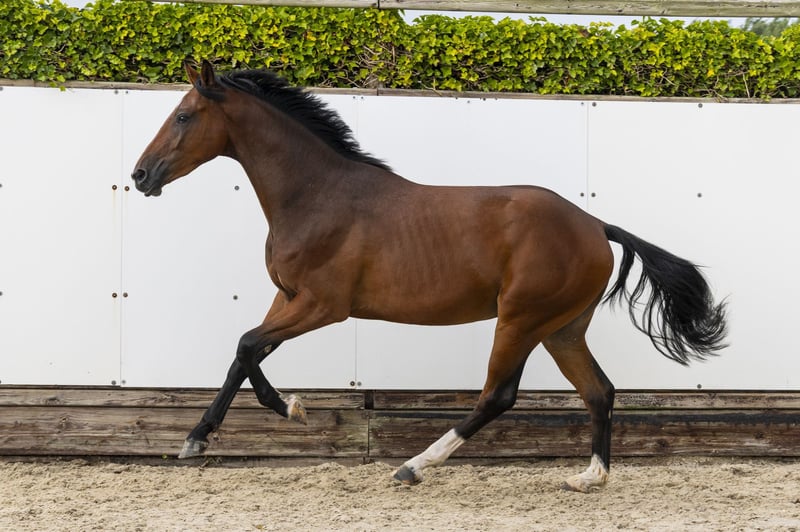 The two-year-old Tsjakka Sam is a colt with a fantastic, uphill canter. His sire Mr. Cornet de Regor is eight years old and competing at 1.45m level. As a son of Cornet Obolensky and the 1.55m Grand Prix mare Ohaj de Regor, expectations are high. Mr. Cornet de Regor is a grandson of the valuable broodmare Centa de Muze. Dam Najla Sam is sired by Impressive VDL (1.45m level showjumping). Granddam Zancoulavasca Fortuna (Vancouver x Corland) gave five international showjumping horses up to 1.50m level, such as Go To Fortuna (1.50m) and Krekboy Fortuna (1.45m). She is a half-sister to the 1.60m Grand Prix horses Bulavsco with Sanne Thijssen and Queen Jane with Tj O’Mara, who later also competed up to 1.50m level with McLain Ward.