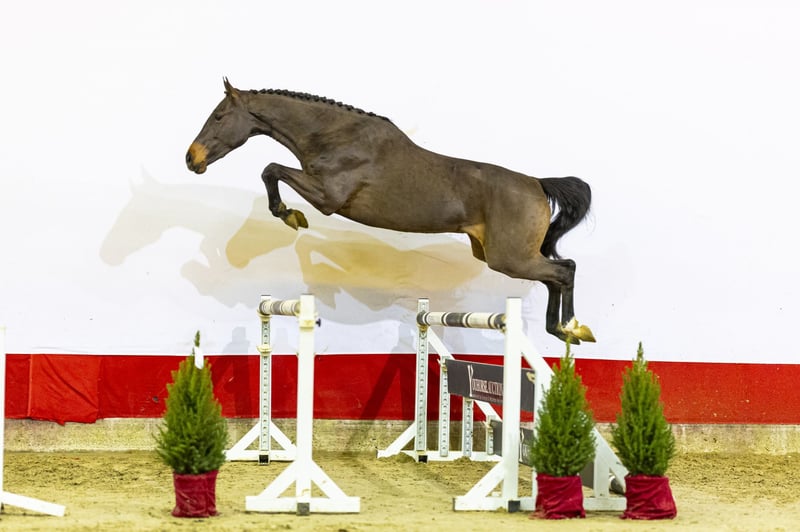Tiboy is a well-built and attractive horse with an appealing sport model and a good way of moving. He shows balance, easy jumping technique. His take-off is quick and light, and he jumps with overview and correctness. His movement is functional and light-footed, making him pleasant to develop further. He has a good canter, thinks towards the fence and shows sufficient athletic ability to progress in sport. Tiboy is bred from Babylon Berlin x Harley VDL. Sire Babylon Berlin combines sharpness and reflexes with strong international jumping genetics through Brantzau VDL and Baloubet du Rouet. Brantzau VDL competed at 1.40m level, while Baloubet du Rouet reached 1.60m Grand Prix level and became one of the most influential showjumping sires worldwide. The dam Havanna, by Harley VDL, contributes scope and rideability. Harley VDL himself competed at 1.55m level and is known for producing horses with quality and a good mentality. Further down the damline we find Mirgane (by Indorado), coming from a proven Dutch performance family. Indorado competed at 1.60m Grand Prix level and left a lasting impact on international showjumping. This family has produced multiple horses competing from 1.30m up to 1.60m level, with influential bloodlines such as Mr. Blue, Corland and Heartbreaker. Tiboy combines an attractive way of moving with a strong and reliable pedigree, making him an interesting sport prospect with long-term potential.