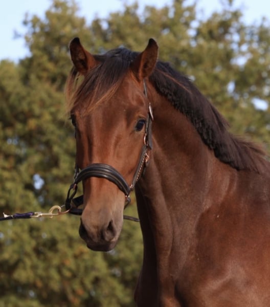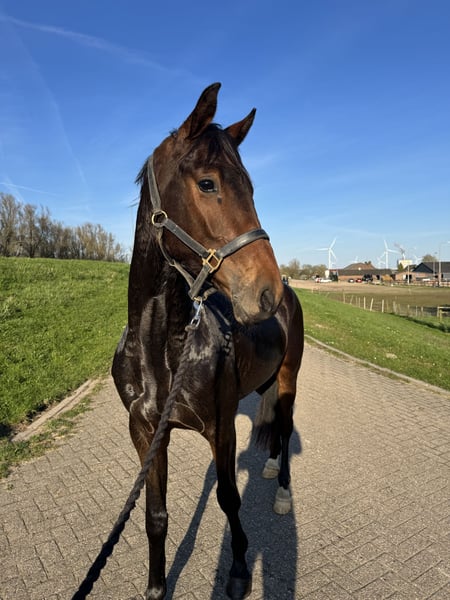 Te koop, onze knappe en talentvolle 3 jarige ruin Thunder D, roepnaam Donder. Een jong paard met een fijne instelling, kwaliteit en een mooie toekomst in het verschiet. Donder is 1.60m maar zal nog wat gaan groeien. Hij is KWPN gefokt, Lantanas x Diego. Donder is recent zadelmak en pakt het werk zeer goed op. Hij laat zich al netjes rijden en heeft inmiddels zijn eerste sprongetje onder het zadel gemaakt, zeer geschikt als allrounder! Ook is hij al een aantal keer mee geweest naar ander terrein, wat hij braaf en rustig oppakt. Ondanks zijn jonge leeftijd laat Donder zich al zeer braaf rijden en zou hij geschikt kunnen zijn voor een jongere of minder ervaren ruiter. Uiteraard is hij nog in opleiding en moet hij verder bevestigd worden, waardoor begeleiding gewenst is. Donder is mensgericht, sociaal met andere paarden, braaf bij de hoefsmid en heeft geen stal gebreken. Hij is klinisch en röntgenologisch goedgekeurd, over keuren mag k.k. Voor meer informatie, foto’s of video’s kunt u een whatsapp sturen naar: 0643797684