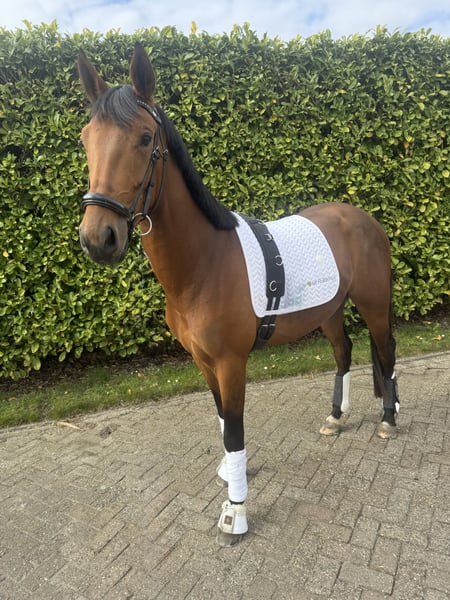Lieve 3 jarige ruin van O’Toto van de wimphof x Tango x Gribaldi. Enkele keren onder het zadel geweest en super braaf maar helaas geen amazone meer om er mee verder te gaan. Klinisch en röntgenologisch gezond en goedgekeurd. Stokmaat 1.59m. Video’s aan de longe op aanvraag. Bij voorkeur graag appen in plaats van bellen.