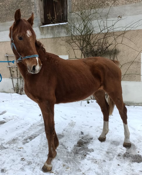 This colorful mare is just about to start her career as a riding horse and has everything needed for a successful start. She is very relaxed in daily handling, familiar with leading, tying, hoof handling, grooming, and has no bad habits. In a mixed herd, she ranks in the middle and is accustomed to both box and open stable management. Anyone wishing to train this gem themselves and secure the price has until February 15, 2026, to do so. After that, the price will increase with her training progress. - Transport and pre-purchase exam (AKU) available upon agreement. - X-ray examination (TÜV) possible, but costs are to be covered by the buyer. - Equipment can be purchased additionally. - Further accommodation with training can be negotiated.