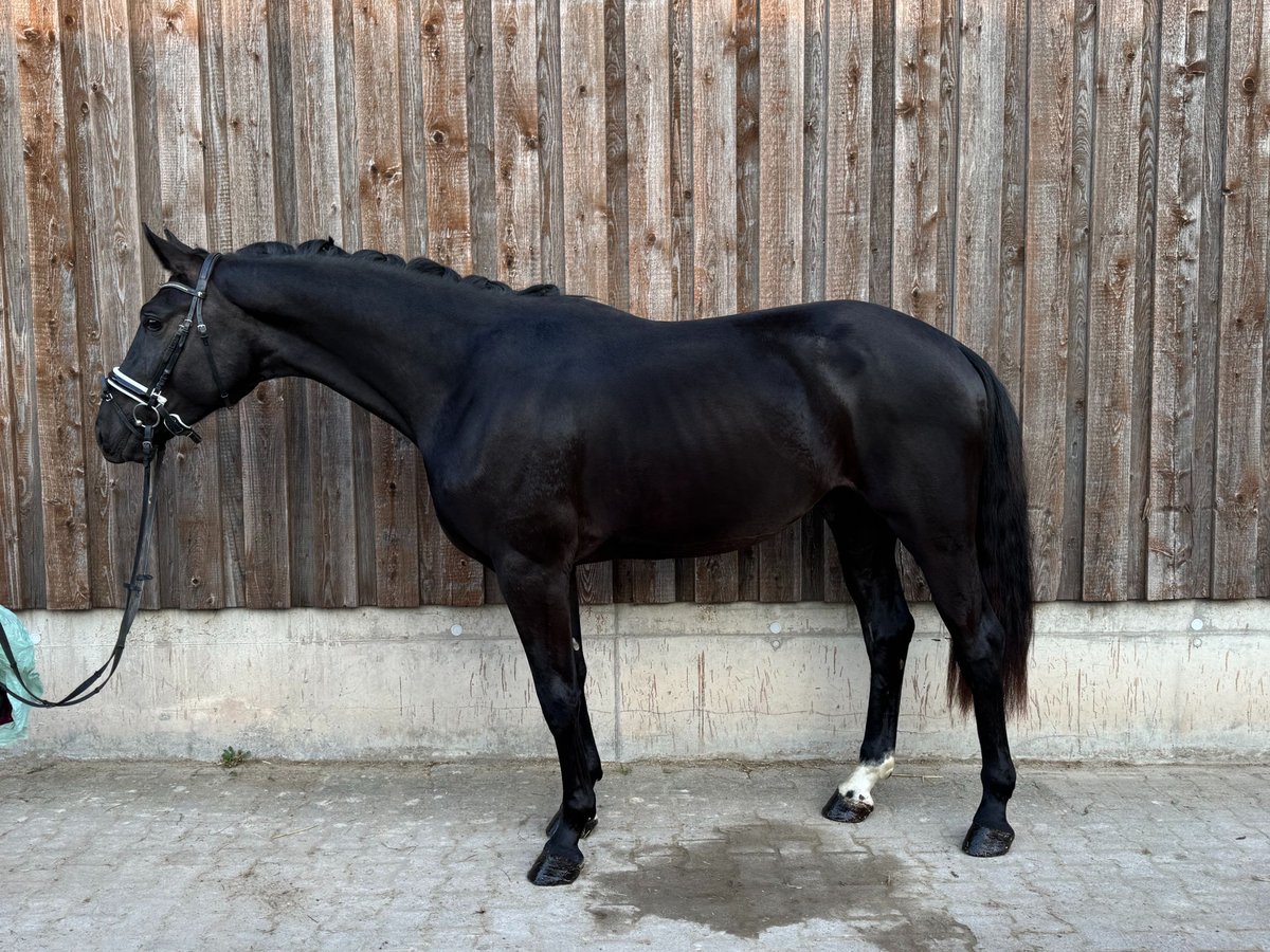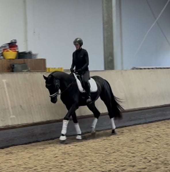 A Charismatic 3-Year-Old Gelding by Fürstenball x Sorento For sale is an impressive approximately 1.72 m tall black gelding (3 years old) with modern pedigree by Fürstenball out of Sorento. This young horse has recently been backed and already handles all three basic gaits under saddle with exceptional calmness and composure. He impresses with very good, elastic movements and a lot of quality in his gaits. He is eager to learn, clear-minded, and consistently cooperative. For variety, he is also introduced to free jumping and performs very well in this discipline. He demonstrates awareness, ability, and a positive attitude over jumps, making him a promising prospect for show jumping or eventing. In daily handling, he is absolutely gentle, affectionate, and very people-oriented—a true companion. He is familiar with other horses in the arena and remains well-behaved and fearless at all times. No nipping, no theatrics—simply straightforward and uncomplicated. He already knows: • Small trail rides • Lunge line work • Farrier visits • Loading without issues A tall, talented young horse with excellent potential for sport and leisure—ideal for someone looking to further develop a quality young horse with a great attitude. Serious inquiries are welcome via message. A trial ride will incur a fee of €30.